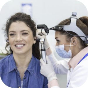 utilizando otoscopios y fibroscopios conectados a pantalla.